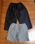 先日買った生地でデニムのワイドパンツと部屋着の夏用短パン