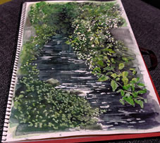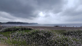 歩いてスケッチ 由比ケ浜は今ハマダイコンの花が満開!