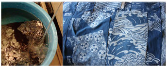 布を藍液につけて