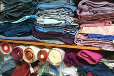 色々な布や素材を組み合わせて作るバッグや小物を制作
