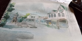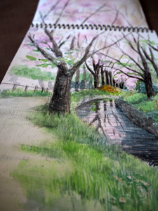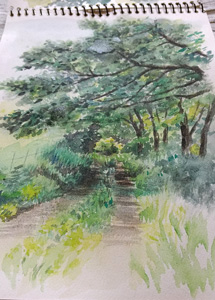 型絵染画の作品の基本は現地でのスケッチ